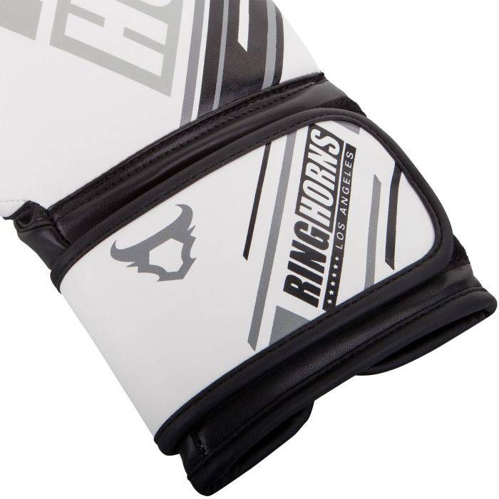 Pour plus de sécurité, le pouce attaché réduit considérablement les risques de blessures. Avec leur design élégant en blanc et le logo Ringhorns, ces gants allient style et performance.