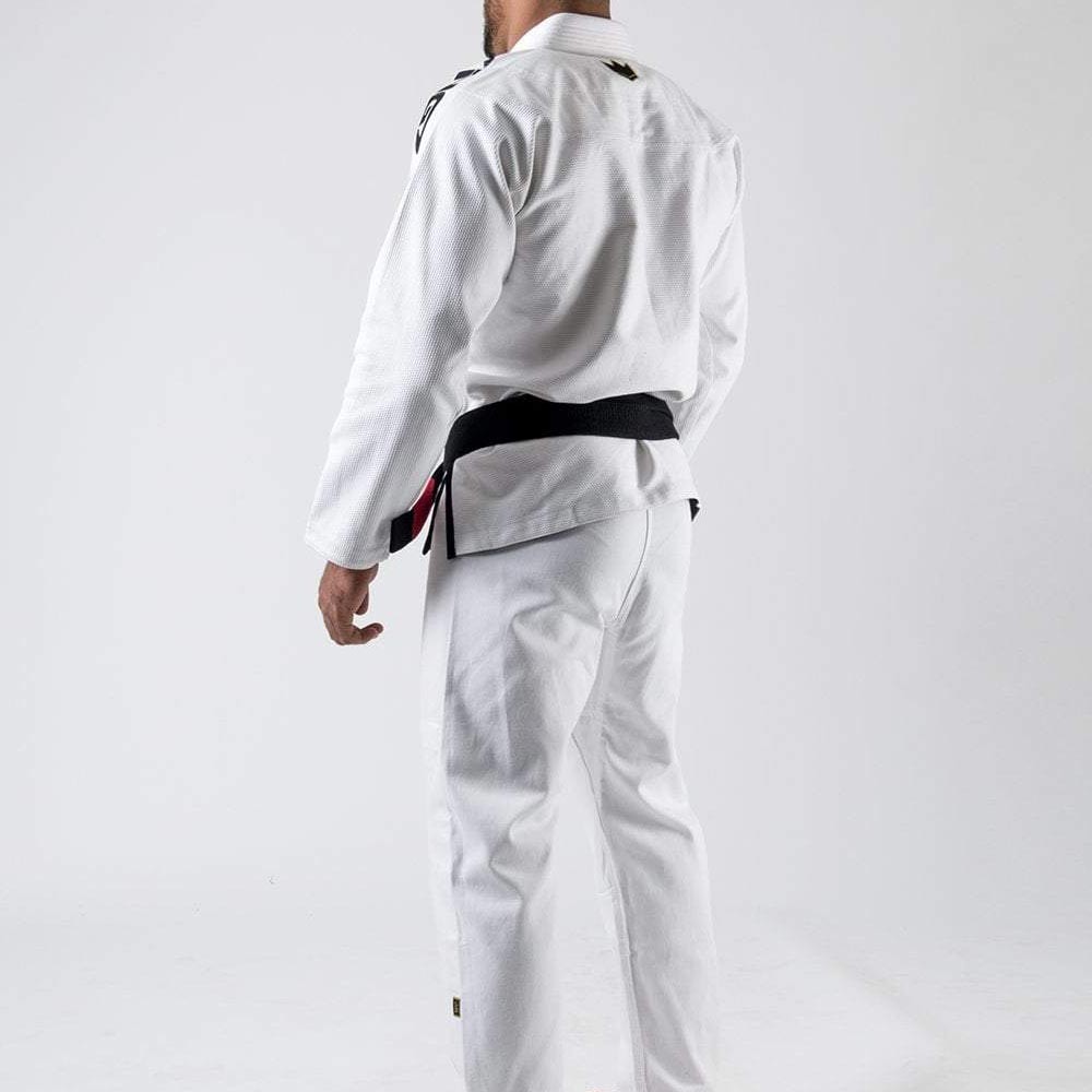Sa veste en coton Pearl Weave 450 gsm offre un parfait compromis entre légèreté et résistance, avec des renforts stratégiques aux épaules pour plus de durabilité. Le pantalon en coton renforcé aux genoux assure une excellente tenue face aux tractions et aux phases de sol les plus intenses.