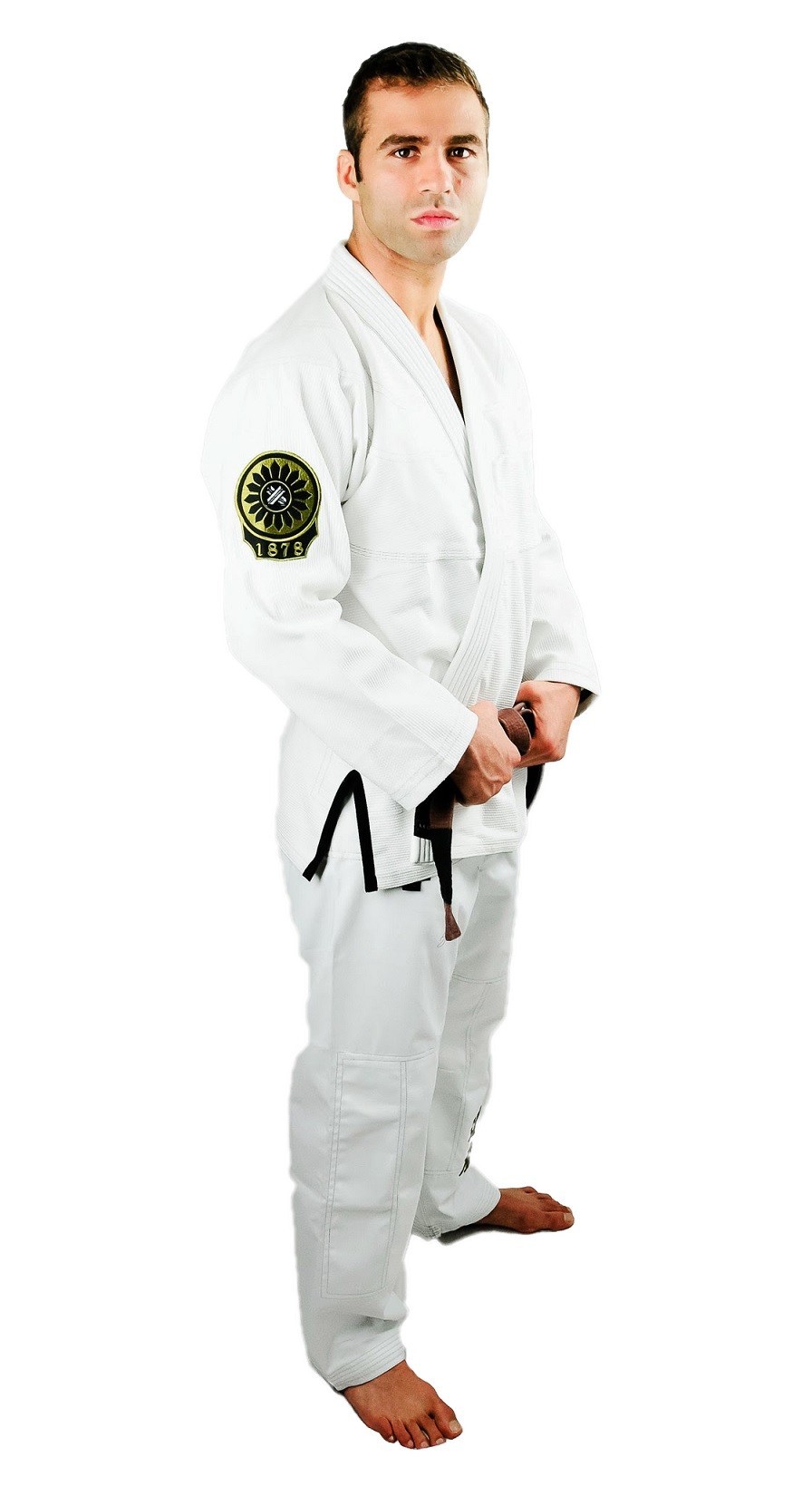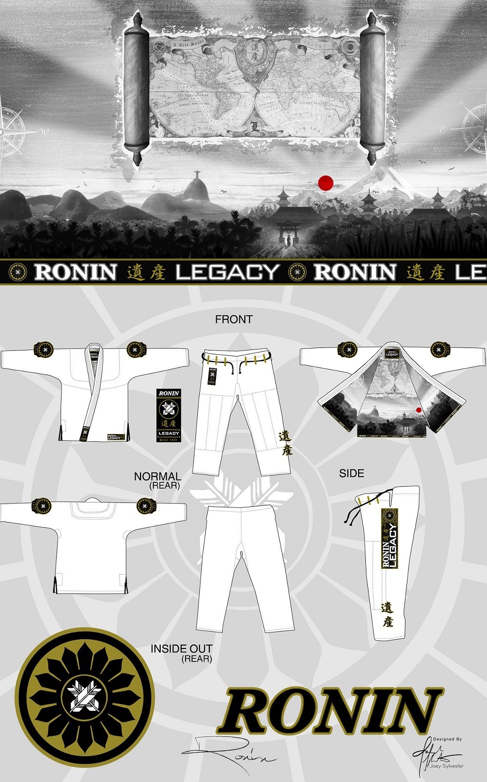 Sa veste en Pearl Weave 450 gsm, 100 % coton et prérétrécie, assure un ajustement idéal et une excellente respirabilité. À l’intérieur, une illustration numérique exclusive de Joey Sylvester met en avant la rencontre entre le Brésil et le Japon. Le col en mousse EVA ferme, enveloppé de toile 14 oz, apporte une résistance maximale face aux grips répétés.
