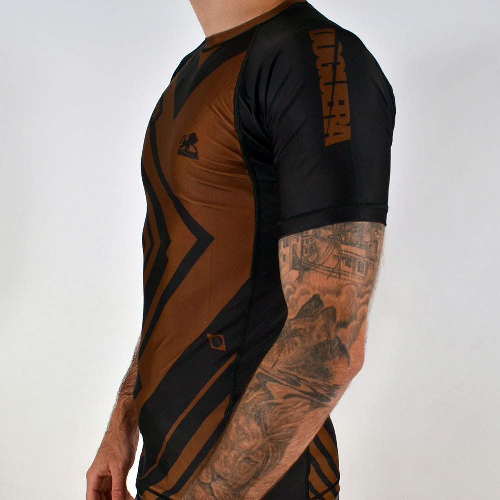 Alliez sobriété et efficacité avec le rashguard Doguera IBJJF 2.0 marron, conçu pour répondre aux exigences des pratiquants de Jiu-Jitsu brésilien. Approuvé IBJJF, il est idéal aussi bien pour les entraînements intensifs que pour les compétitions officielles.